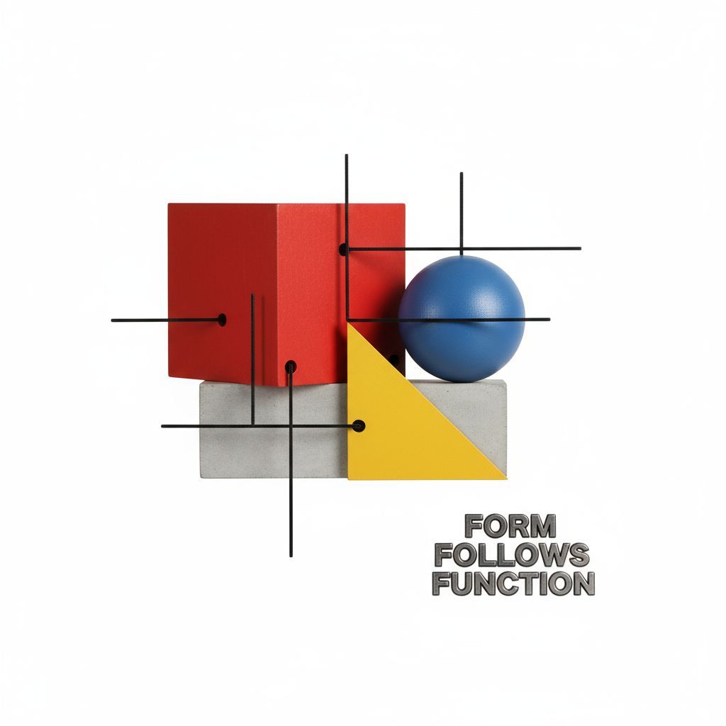 Generate Bauhaus-style designs focusing on functionalism. Features clean lines, geometric shapes, primary colors, and a minimalist, modern aesthetic.