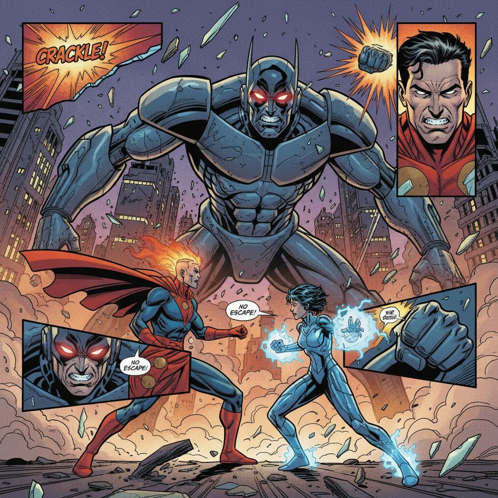 Generate dynamic comic book panels and illustrations. Features bold linework, vibrant colors, action poses, and dramatic effects suitable for sequential art.