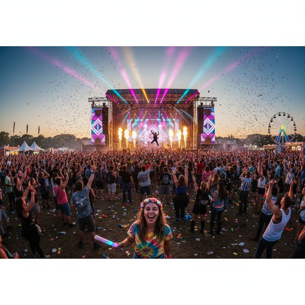 Create vibrant music festival photos with concert atmosphere. Capture the energy and excitement of live music events.