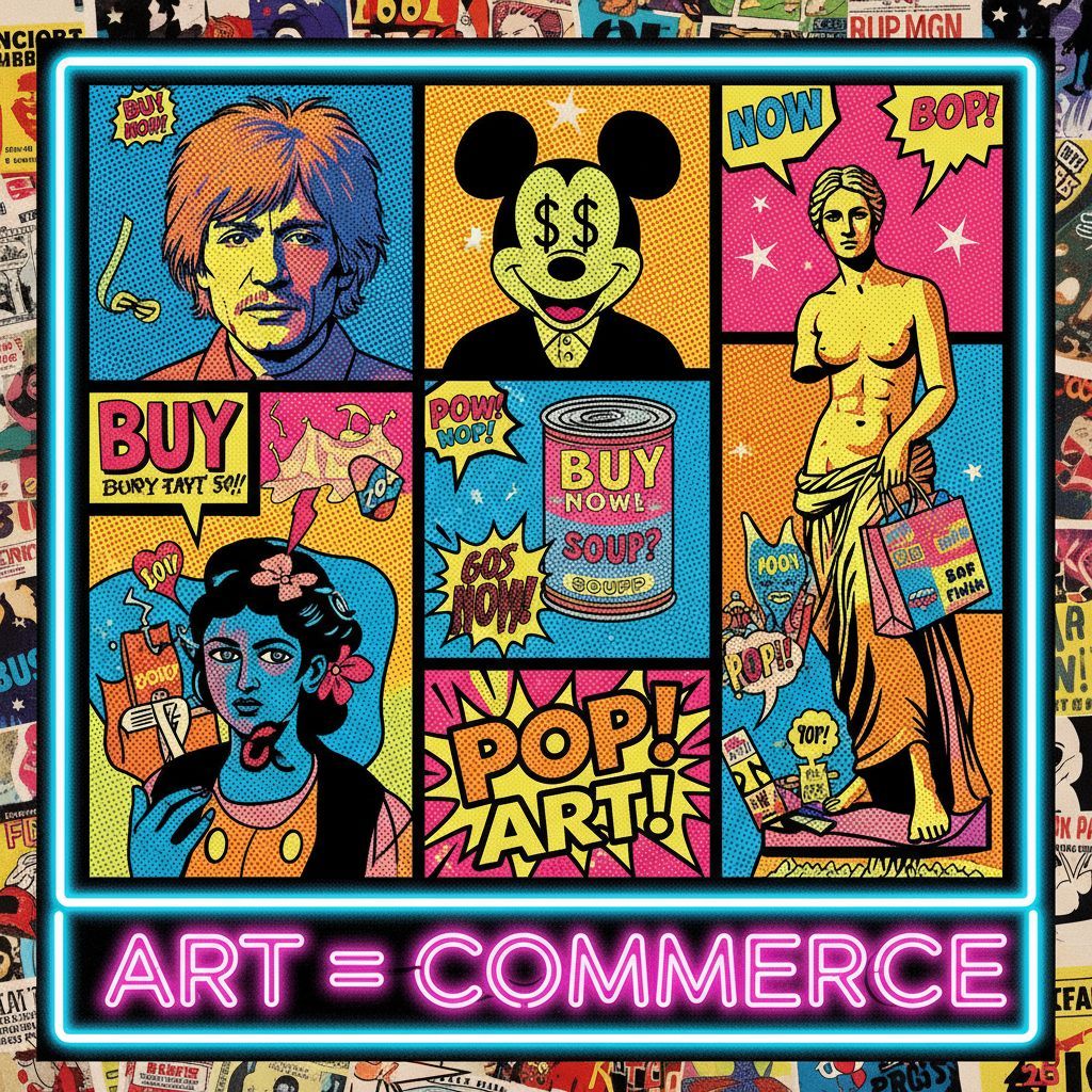 Generate bold Pop Art images inspired by Warhol and Lichtenstein. Features bright colors, Ben-Day dots, and themes drawn from popular culture and media.