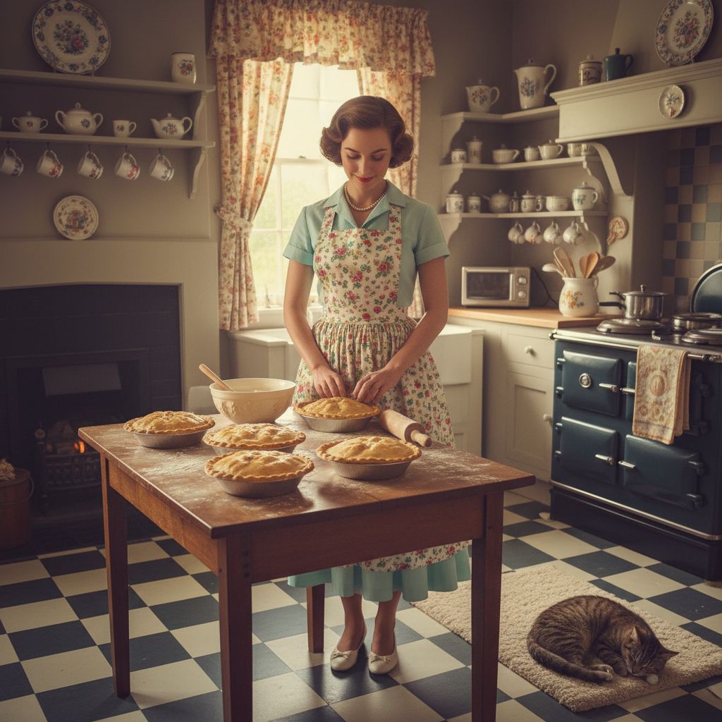 Create traditional homemaker aesthetic photos with vintage styling. Perfect for domestic, cozy, and traditional lifestyle imagery.